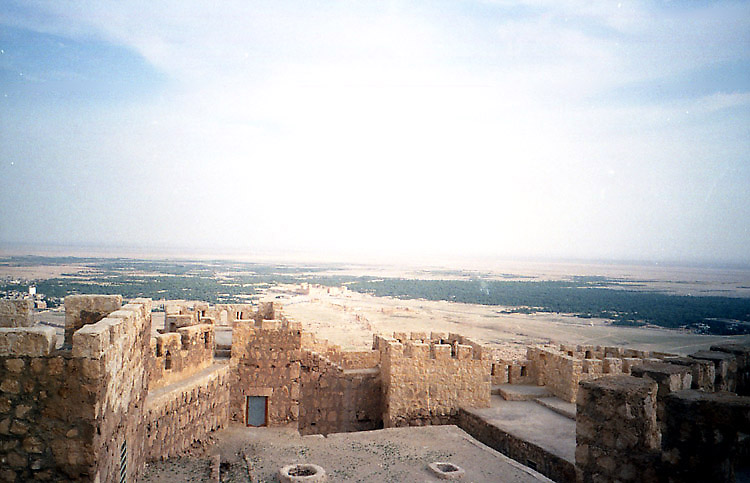 アラブ城と貴族(?)の墓(丘のすそに並ぶ四角い建物)。 |