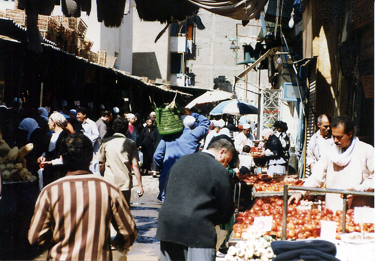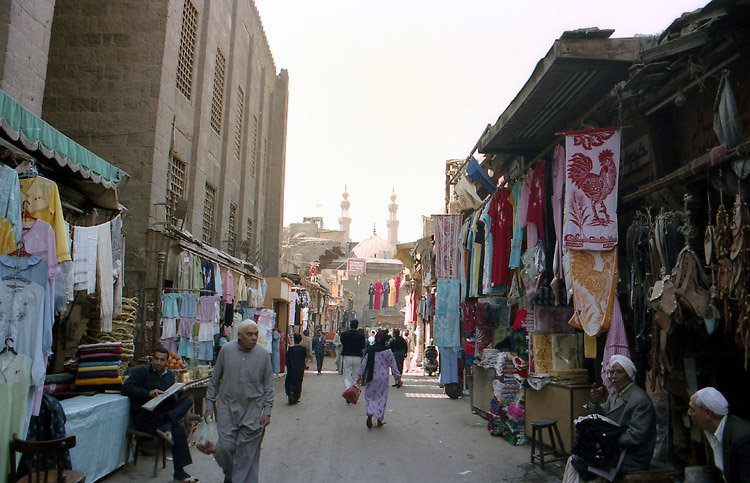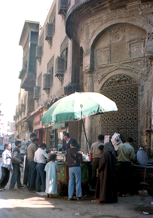 食中毒? (3月15日)この日はカイロの中心、タハリール(ナイルヒルトンなどのある場所)から旧市街、イスラミックカイロに歩いて出た。 イスラミックカイロの北はアズハル地区といわれ(南はシタデル地区)、19世紀に新市街が作られるまでカイロの中心として栄えたところで、古い建物が多く残っている。また、ハーン・ハーリーというカイロ最大のバザールがあり土産物屋が集中している。午前中ということもあり、まだ閑散としているハーン・ハーリーを少しのぞいてから、町並をカメラにおさめながら歩いた。
