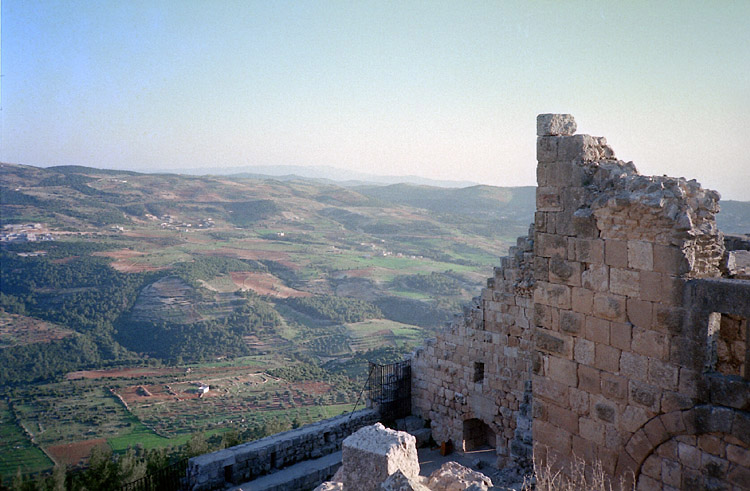タクシーにもどると、運転手のおじさんの「アジュルン城に行こう」攻撃が待っていた。「早く帰ってダマスカスへのバスのチケットを買わなければならない」と言うと、「俺の会社でもダマスカスまでタクシーを走らせている。料金は4ディナールだ」という。乗り合いタクシーらしい。ならば、それでもよいだろう。このおじさんの誘いを断りきるのも相当のエネルギーが必要そうだ。アジュルン城に行ってもらうことにした。 アジュルン城は、遠くまで見渡せる高みにある荒れ城だった。シリア・ヨルダンに多くある十字軍関係の城の一つで、十字軍に備えて造られた要塞。日が傾き始め、寒風が吹いていたこともあり、観光は早々に切り上げた。