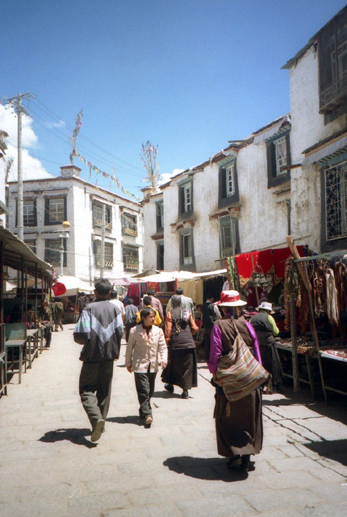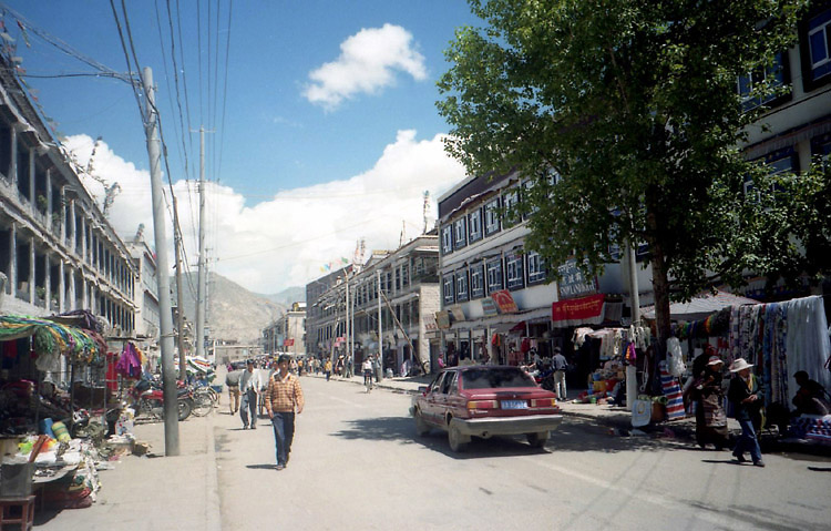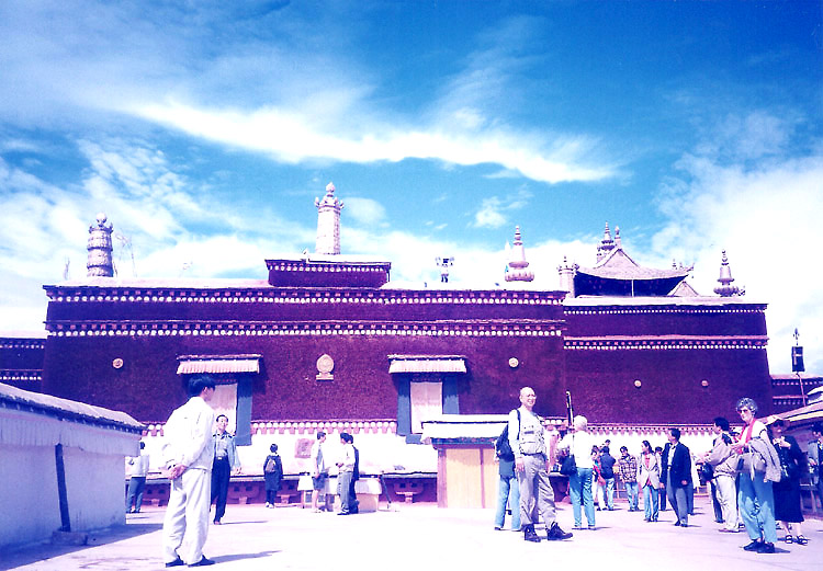 ラサ ラサに着いた翌日(22日)、まず、すべきことはラサ-成都-上海の航空券の確保だった。この旅は成田-カトマンズの片道航空券で出かけてきており、その先は完全に出たとこ勝負であった。それもこれも、カトマンズ-ラサの日程がまったく読めなかったからである。 さて、旅行を続ける日程的余裕はあり、もう少しチベット旅行をしてから帰国の途につくという選択肢もあった。しかし、最大の目的である、ネパールからヒマラヤを越えてチベットへ移動する陸路の旅は完了したせいか、旅を続けるモチベーションがあがらなかった。 結局、チベットにはあと2日だけ滞在して、帰国の途につくことにした。 運よく航空券は確保でき(最悪バスでの移動も考えていた)、午後は大昭寺(ヂョカン寺)へ出かけた。