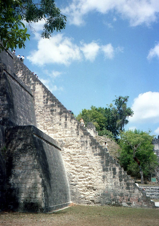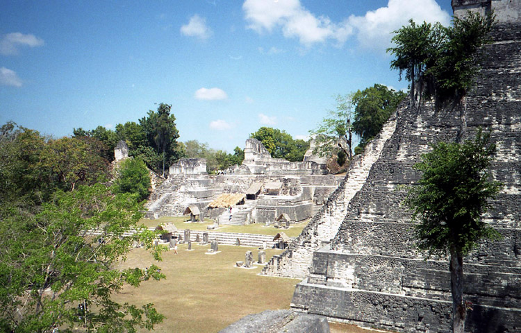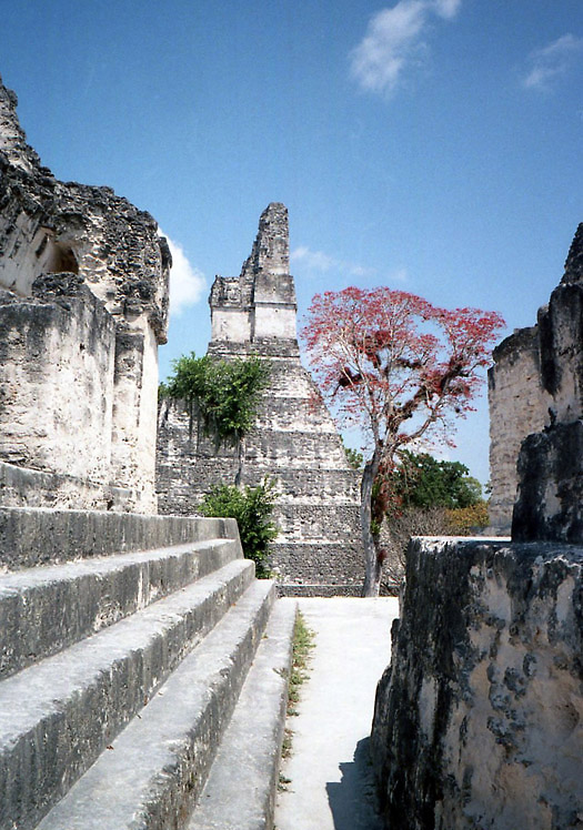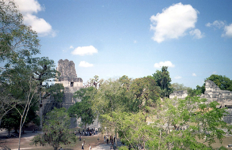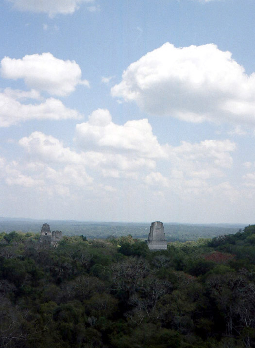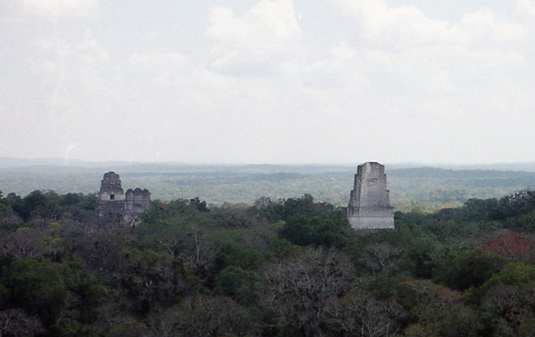 ティカル遺跡はグアテマラの北部ペテン地方のジャングルの中に埋もれるようにして残るマヤ文明の都市遺跡である。紀元前から都市が形成されたとされるが、紀元後成長し、9世紀にかけて栄え、6世紀から8世紀にかけては、現在見られるピラミッド型神殿を中心とする巨大建築物が築かれた。しかし、10世紀に入ると急速に衰退し、住民は去り(衰退の原因についてのは確定されていないらしい)、その建造物群はジャングルの中に埋没していった。(ティカル遺跡には2000年3月に訪れた。)