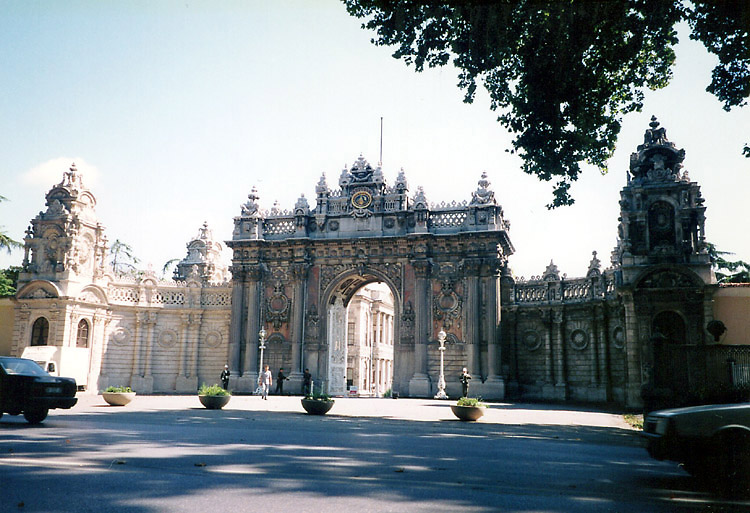 | <ドルマバフチェ宮殿> 19世紀半ば、スルタン・アブデュルメジドが建設したバロック様式とオスマン様式を折衷した宮殿。ここへは1992年3月に訪れたが、その時からすでに内部の写真撮影は禁止されており、門の写真しか撮っていない。