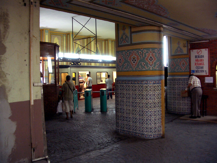 <チュネル、カラキョイ駅> 1875年に造られたという地下鉄。乗車時間はたった3分。それだったら歩いた方がよいと思うところだが、このチュネルが走っている区間は急坂でイスティクラール通り方面に行く際には利用価値が高い。