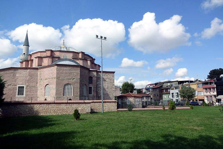 <キュチュック・アヤソフィア・ジャミイ> 6世紀にユスティニアヌス帝によって建てられた教会だが、コンスタンティノープル陥落後にジャミイ(モスク)に改装された。イスタンブールに現存する最古のビザンツ建築。「キュチュック」とは「小さい」という意味で「小アヤソフィア」という名前を意識して内部を見学すると、なるほどという気がしないでもない。