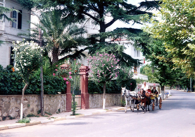 <ビュユック島> マルマラ海の東、イスタンブールのアジア側の沖合にプリンスィズ(プリンセス)諸島とよばれる島々がある。いくつかの島々にはイスタンブールから船の便があり、避暑地やリゾート地として人気の場所になっている。 1996年、旅行中に体調を崩し東部トルコをまわる予定を変更して早々にイスタンブールに出てダラダラすごすなか、時間つぶしのためプリンスィズ諸島のビュユック島(イスタンブールから1時間半くらい)へ行った。