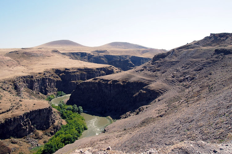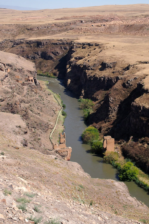 | カルスはトルコ東部、アルメニアとの国境近くにある町で、19世紀にはオスマン帝国とロシアとの間で争奪戦が行われロシアの支配下にあったこともあり、ロシア時代の建築物も残っている。ここへは2012年8月に訪れたが、その目的はカルスの東南45kmのところにあるアニ遺跡の見学。アニ遺跡は10世紀後半にバグラトゥニ朝アルメニアの都とされた都市で、アルメニア東方教会総主教も移されて宗教上の中心地ともなった。最盛期には人口が10万を超え、1001の教会をもつ町と言われていた。11世紀半ばにはセルジュク朝の、さらにセルジュク朝に属するシャッダード朝クルド王国の、12世紀末にはグルジアの支配下に入るなどの歴史をたどった。 なお、トルコとアルメニアとの関係が悪く、遺跡の横を流れる川の向こうがアルメニアという場所にあるアニ遺跡内では写真撮影が不可だったので目的地の候補から外していたのだが、久しぶりでチェックしてみると写真撮影が許されるようになっていたので出かけることにした。