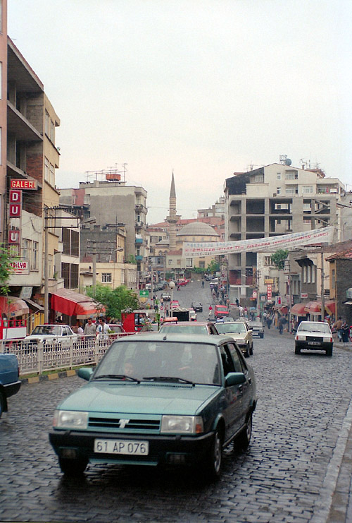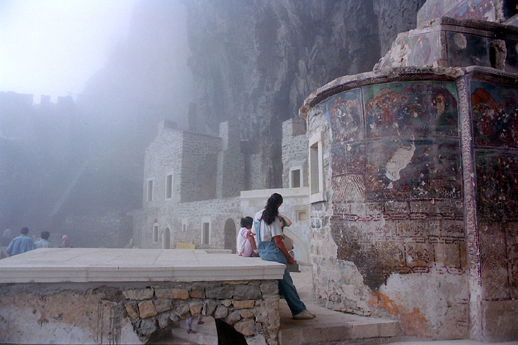 | トラブゾンはトルコ東部の黒海沿岸に位置する町。この町の歴史はギリシャの植民地となった紀元前8世紀までさかのぼることができ、その後ペルシャ、ローマ~ビザンツ、オスマン朝などの支配を受けたが、13世紀にはトレビゾンド帝国(ビザンツ帝国のコムネノス家の後裔が建国)が栄え、1453年のコンスタンティノープル陥落後も何とかオスマン朝に対抗していたが、1461年に滅亡した。 トラブゾンには近郊の町マチカにあるスメラ修道院(跡)観光が目的で1988年11月と1994年7月に訪れている。一度目に訪れた際、旅行の最終盤に撮影済みのフィルムを失うという失態を演じてしまったので、写真を取り直すためもあって1994年に再訪した。ということで、下の写真はすべて1994年7月に撮影したもの。