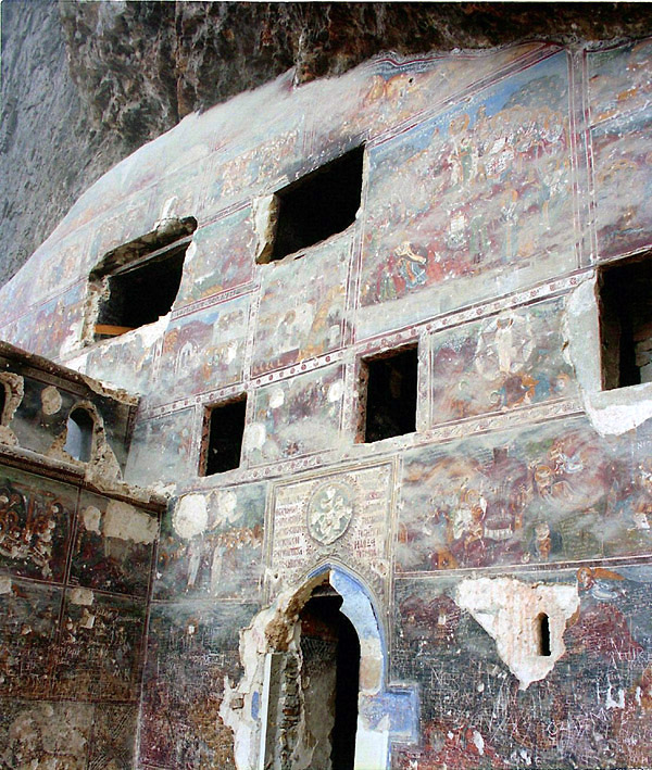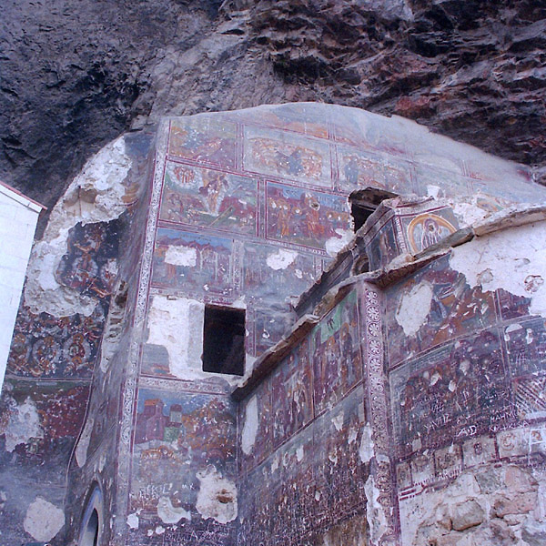 スメラ修道院(跡)はトラブゾンから54㎞ほど南に下った(山の中に入った)ところにある。夏季には多くの観光客が訪れるのでミニバスの便も比較的多く、アクセスは容易だったという記憶が残っている(と書いたが、当時のメモを見ると都合の良い時間帯のバスがなくタクシーを利用したようだ)。1888年11月に訪れた際は、完全なシーズンオフでトラブゾンに来てから知り合った旅行者2人(日本人とオーストラリア人)とタクシーをシェアして訪れた。 スメラ修道院はビザンツ帝国の時代の4世紀に創設されたともいわれ、現在残る建物は14世紀の再建されたものとのこと。