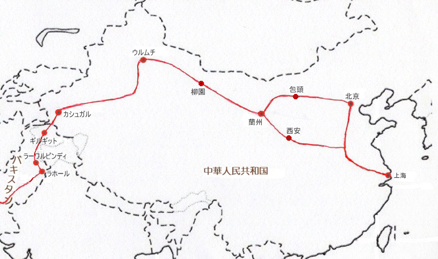 2.1987年8月:ウルムチ(中国)~北京(中国)=鉄道(包頭経由) (1993年8月:柳園~北京=西安経由) 3.1991年8月:ギルギット(パキスタン)~ウルムチ(ウルムチ) ◆ギルギット(パキスタン)~ススト(パキスタン側ボーダー)=バス ◆ススト~ピラリ(中国側ボーダー)=ストライキのためバスが動かず、商用か公用か不明だが中国側から来ていた車に便乗させてもらう(有料) ◆ピラリ-カシュガル(中国)=バス(途中タシュクルガンで1泊) ◆カシュガル~ウルムチ(中国)=タクシーをチャーター(バス、飛行機ともに予約がいっぱいでチケットがまったく買えず)