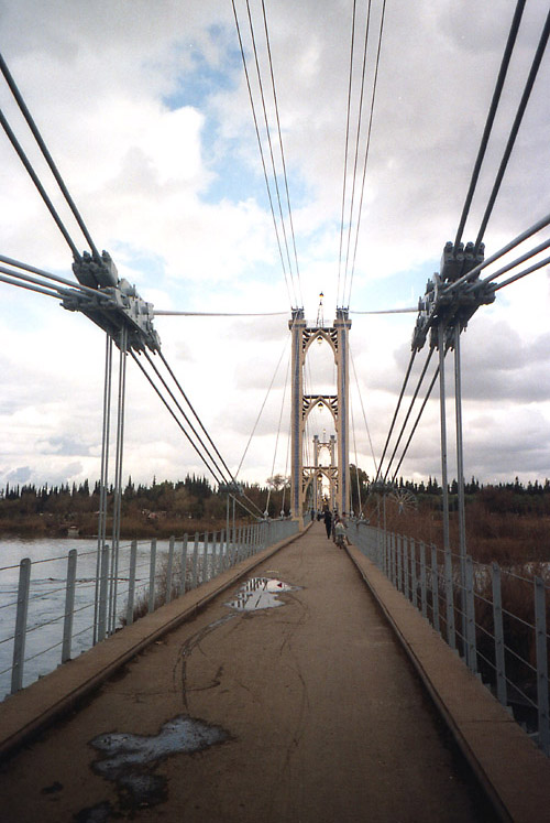 デリゾール橋。この橋は歩行者・二輪車専用。下を流れるのがユーフラテス川。 |
