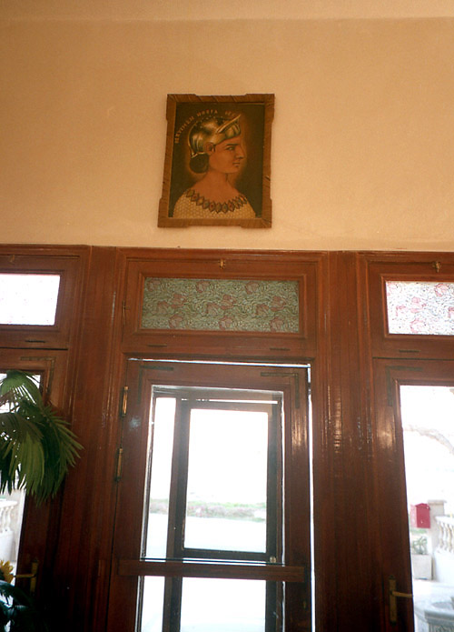 ゼノビア・ホテルの入口の上に懸けられた女王ゼノビア(3世紀後半ローマと戦い敗れた)の肖像。 |