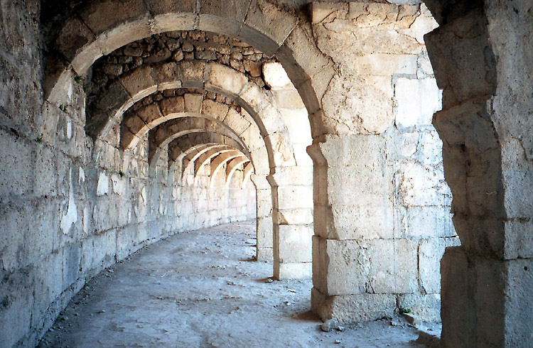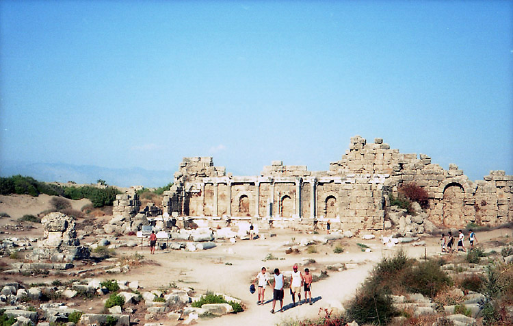 地中海岸の遺跡再訪2(アスペンドス・スィデ) 8月19日.朝から暑かった。ギリシャ行きはまだ決断できず。 8時半、旅先の自分にしては遅めの朝食をとり、絵葉書を数枚書いてから外出した。この日はアスペンドスとスィデに再訪する予定である。