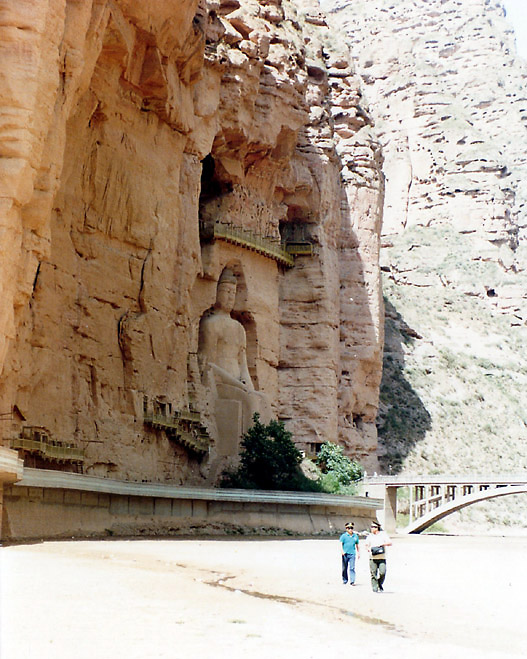 街歩きの後、楊君は彼の家に招待してくれた。恐る恐るついていくと、素朴で優しそうな彼のお母さんに迎えられ、近所に住む彼の友人もやって来た。 今晩の列車で蘭州へ行くということを話すと、彼や彼の友人もこの日の夜の列車で蘭州に戻るということで、駅に行って僕の分の切符も買ってきてくれた。自分で並ぶ手間が省けただけでなく、中国人の彼が購入してくれるということで外国人料金でもない(当時はまだ外国人料金というのものがあったのだ)。 楊君の家で夕食もご馳走になり、20時半すぎの列車で蘭州に向かった。細かいメモがなく記憶も定かではないが、ちょうど夏休みが終わり、学生が故郷から大学のある街に戻る時期だったらしく、列車ではフフホトの大学に戻るという学生たちとも同席となり、中国人の大学生たちは酒を飲んで大盛り上がりだった。 29日。 昼の12時少し前、蘭州到着。 楊君の案内で蘭州大学へ。彼が教えてもらっている先生を紹介される。先生としても、いきなり外国人を紹介されても困るという感じかと思いきや、そういうことはまったくなく、そのあと、食事だけでなく(もしかしてご馳走になってしまったか? メモがないのでわからないが)、なんと、蘭州でのホテル確保、次の移動のチケット確保につきあってくれた。 30日。 前日、最大の関門と思われた北京までの航空券も確保できたので、残されたやるべきことは炳霊寺の石窟見物だけでる(炳霊時は黄河北岸に穿たれた石窟寺院で、4世紀から作られ始め、唐代に最盛期を迎え、明代まで作られ続けたらしい)。 ちょっと疲れ気味なので、午前中はホテルでのんびりして、午後2時、前日も世話になった旅行会社に炳霊寺ツアーについて問い合わせに行った。が、16時にもう一度来いとのこと。なかなか事が円滑に進まない。 16時に再度行ってみると、ツアーは催行されないとのこと。これはきつい。個人で車などを手配しないとならないし(当時は公共交通でのアクセスは難しかったと思う)、途中からは船に乗らねばならないが、そうれはどうなるのだ? う~むと悩みながら善後策を考えていると16時半ころ、ツアーが実施されることに(なぜ実施されることになったかはメモがないので不明-香港人グループがツアーに申し込んだため参加者数が確保されたからと思われる)。 結局、この日はツアーの申し込みを行っただけで終了。なんという無駄な時間の過ごし方をしているのかと思われるかもしれないけれど、当時の中国自由旅行は多かれ少なかれだいたいこんな感じだった。 31日。 7時10分ころ、ツアーの出発地である蘭州飯店へ(ピックアップサービスなどはあるはずもなく、自分の泊っているホテルから路線バスで移動)。 集合は7時半ということになっていたが、出発したのは8時。 参加者は香港人4人、中国人(だと思う)1人、ドイツ人1人、そして僕。(中国人ガイド付き) 10時ころ劉家峡ダムの船着場に到着。 11時出航。途中給油のための大停船があり、15時、やっと炳霊寺到着。