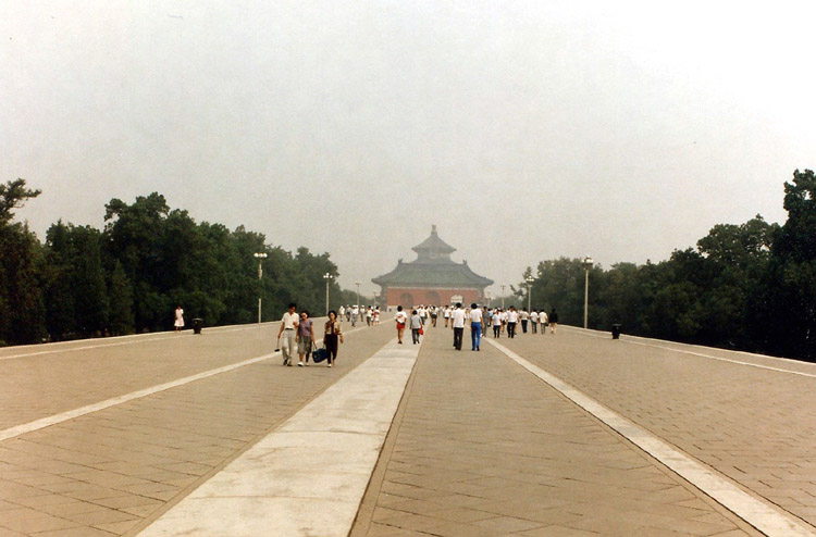 以上、なんともゆるゆるな1日終了。 2日。 蘭州を去る日となった。しかし、飛行機の出発は18時半なので、まだまだ、時間はたっぷりある。でも、やることは何もない。 11時半にチェックアウト。 ホテルのレストランに行くと、また陳さんと一緒になり、食事をおごられてしまう。 振り返ると、この旅は、本当に中国の人々との交流が多かった。 14時、ホテルを後にして、空港への連絡バスが出る中国民航へ。 18時半の北京行きの便に合わせて運行されていたバスは15時30分発。まだ、時間がたっぷりあるが、1時間やそこらは長いとは感じなくなっていた。 そうこうしているうちに楊君がやってきた。空港まで見送りに行ってくれるというではないか。航空券の購入に付き合ってくれたので、どの日のどの便に乗るのかをわかっていたのだ。 楊君とは、どのようにコミュニケーションをとったのかは忘れてしまったが、おそらく英語と漢字での筆談だったと思う。彼には日本留学の希望があって、僕に力を貸してもらいたいらしかった。当時は、中国人の日本留学には相当なハードルがあったので(日本の受け入れ先の問題も含めて)。 日本での身元保証人とかにはなれないが、帰国後、何か方法はないか、一応、中国人留学生を受け入れている機関みたいなところに問い合わせてみたが、かなり難しいということを言われ、楊君にはその旨を記した手紙と、慰めにはならないかもしれないが日本の音楽のカセットテープ(自分で録音してものではなく販売されているもの)を送ったことを覚えている。 彼があそこまで親切にしてくれたのは、何とか日本留学の手がかりをという思いもあったのだろうと思う。 3日。 帰国予定日である。しかし、帰りの航空券はまだ買っていない。 ということで、朝、まずJALのオフィスへ行った。 国際線のチケットを当日購入などということがあり得るのか? これについては、北京-成田便は連日満席という感じではなく、当日購入で問題なく搭乗できた。もちろん、当日に格安チケットが買えるはずもなく、ノーマル運賃なのだが、当時、中国元建てのチケット料金はかなり低額に設定されており、ものすごく高いという感じではなかった。 無事、当日16時発の成田行きチケットを購入し、その後、天壇を観光してから空港に向かった。