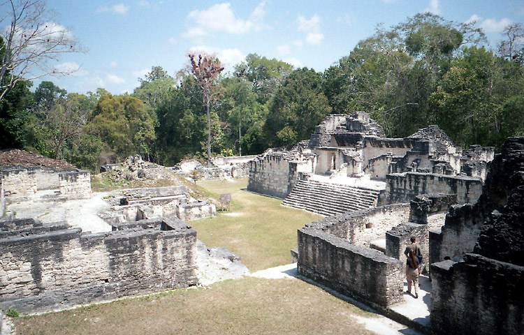 ティカル遺跡はグアテマラの北部ペテン地方のジャングルの中に埋もれるようにして残るマヤ文明の都市遺跡である。紀元前から都市が形成されたとされるが、紀元後成長し、9世紀にかけて栄え、6世紀から8世紀にかけては、現在見られるピラミッド型神殿を中心とする巨大建築物が築かれた。しかし、10世紀に入ると急速に衰退し、住民は去り(衰退の原因についてのは確定されていないらしい)、その建造物群はジャングルの中に埋没していった。(ティカル遺跡には2000年3月に訪れた。)