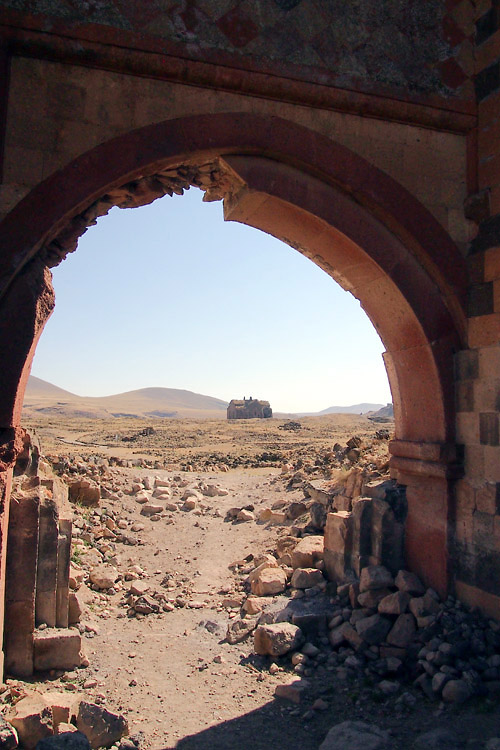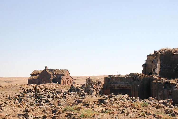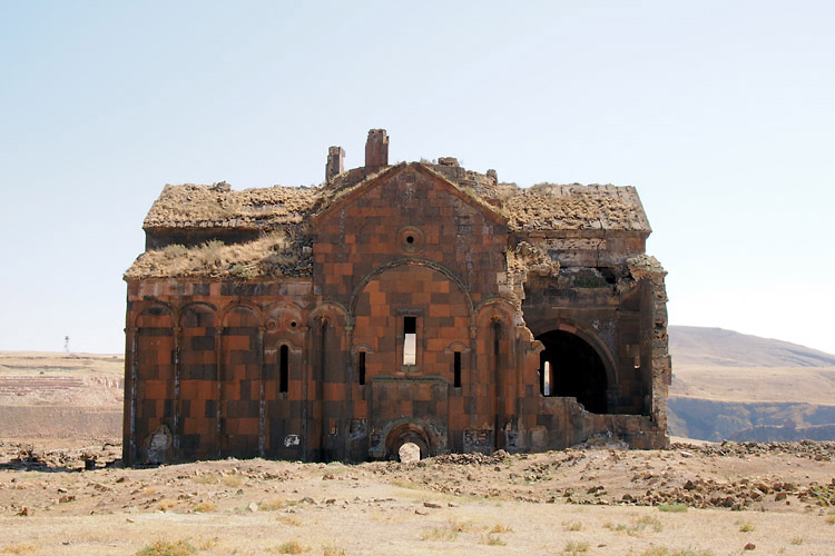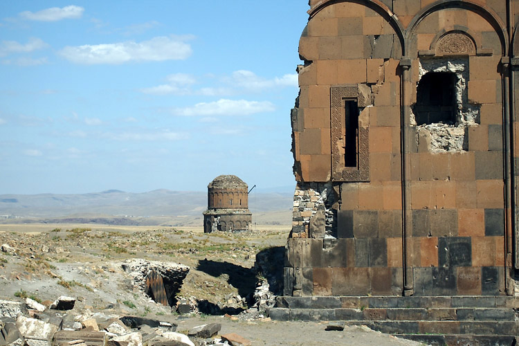 | カルスはトルコ東部、アルメニアとの国境近くにある町で、19世紀にはオスマン帝国とロシアとの間で争奪戦が行われロシアの支配下にあったこともあり、ロシア時代の建築物も残っている。ここへは2012年8月に訪れたが、その目的はカルスの東南45kmのところにあるアニ遺跡の見学。アニ遺跡は10世紀後半にバグラトゥニ朝アルメニアの都とされた都市で、アルメニア東方教会総主教も移されて宗教上の中心地ともなった。最盛期には人口が10万を超え、1001の教会をもつ町と言われていた。11世紀半ばにはセルジュク朝の、さらにセルジュク朝に属するシャッダード朝クルド王国の、12世紀末にはグルジアの支配下に入るなどの歴史をたどった。 なお、トルコとアルメニアとの関係が悪く、遺跡の横を流れる川の向こうがアルメニアという場所にあるアニ遺跡内では写真撮影が不可だったので目的地の候補から外していたのだが、久しぶりでチェックしてみると写真撮影が許されるようになっていたので出かけることにした。