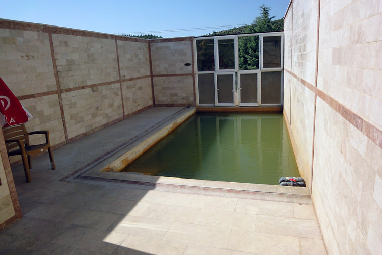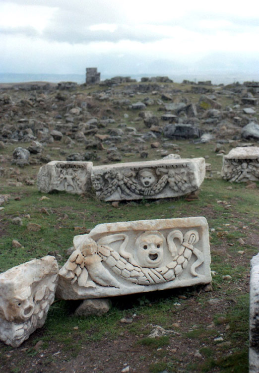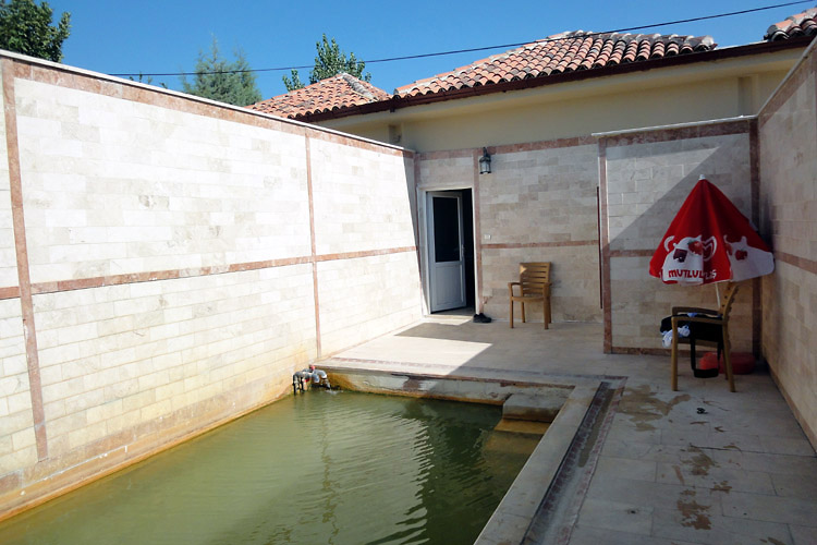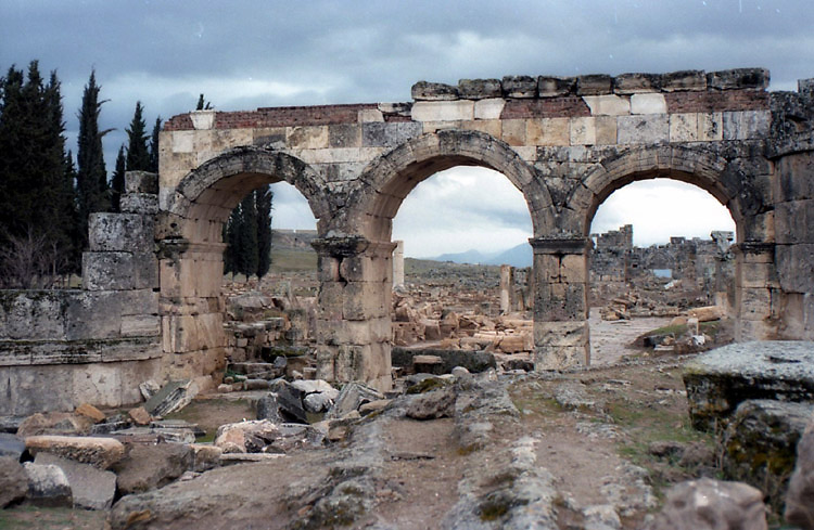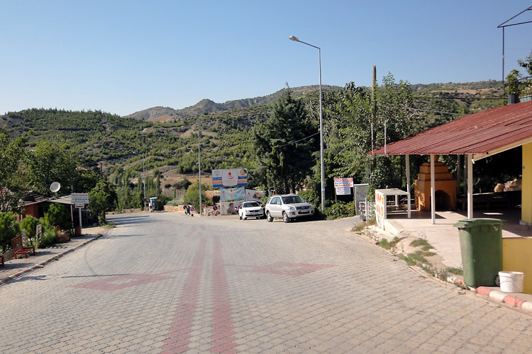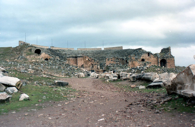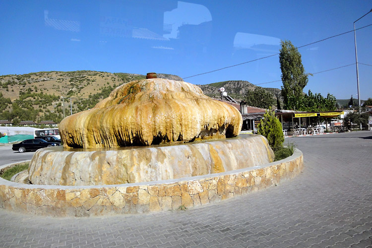 *1988年11月の旅日記 1988年の旅ではかなり詳細な旅日記を書いていた。そのなかのパムッカレの部分は次のような感じ。 「(デニズリのオトガルから乗った)パムッカレ行きのミニバスはデニズリの街の同じところをまわりだした。客集めだ。車掌役のおじさんが「パムッカレー、パムッカレー」と叫ぶ。「パムッカレー」の後に別に何か言っているが「パムッカレーはないかー」と聞こえる。 市街地を3周ほどしてからやっと郊外への道を走り出した。20分ほどで白い段々畑のような石灰棚が目の前に現れ、その縁に沿う坂道をバスはウインウインとうなりながらのぼっていった(今は車の立ち入りはできなくなっている)。石灰棚はもっと大規模なものかと思っていたが、小さなスキー場の距離は短いが少し傾斜のきつい中上級者向けコースという感じだ。……さっそくホテル捜しだ。石灰棚の麓にいけば安宿はたくさんあるようだが、石灰棚の上にある高級ホテルを奮発する。コッテージ式で一部屋一部屋玄関が別になっており、共同の中庭には温泉プールがあるという豪華さ。しかし、一泊朝食付きで日本円換算約2500円だった。ただ、これはシーズンオフ料金だから、オンシーズンはもっとするはずだが…。チェックインの後、石灰棚を見てから、さらに山の上の方にあるローマ時代の劇場に行ってみたが、エフェソスを見てしまった目には少々物足りない。遺跡を見た後、また石灰棚に戻ってきた。この石灰棚は夕暮れが美しいと言われている。靴を脱いで棚田のようにお湯がたまっている中に足を入れる。あまり暖かくない。お湯は上の段から下の段へと流れ落ちていくので、下の段へ行くと冷たいくらいだ。陽が傾くにつれて遠くの景色が逆光にかすんで、白い石灰棚が薄いオレンジ色になってきた。丁寧に構図を決めシャッターを切る。写真の出来上がりが楽しみであったが見ることができなくなってしまった(フィルムを失うという失態を演じてしまった)。ところで明かるい時間帯は美しい石灰棚だが、夜になるとそうでもない。昼食が軽かったので、日が暮れるとすぐに空腹に襲われた。ホテルの夕食時間が8時からと遅くて、それまで待ちきれそうにないので、石灰棚の下の安宿街まで歩いて出かけたのだが、石灰棚を照らす照明が寒々として何かナイタースキー場といった感じで、なおかつ白い斜面には誰もいないので、かなり不気味な光景だった。」 <カラハユット> カラハユットはパムッカレのすぐ北にある温泉地。ここへは2011年8月、スィデからイズミルまで長距離移動した日にちょっと寄り道した(時間がなかったのでパムッカレには寄らなかった)。