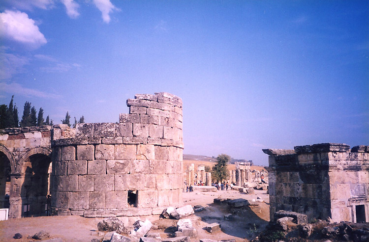 パムッカレのお湯の流れ出る台地の上にはヒエラポリスという都市があり、現在その遺跡が残っている。ヒエラポリスは紀元前190年ペルガモン王国の時代に建設された都市で、2世紀にローマ帝国の支配下に置かれ、温泉を利用した保養地として繁栄した。その後、ビザンツの支配を経て、セルジューク朝により攻撃で衰退し、14世紀半ばの大地震で都市は崩壊した。