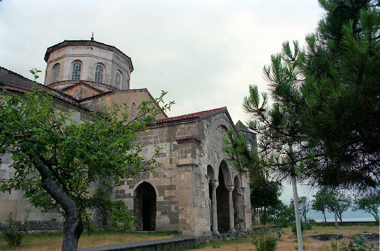 | トラブゾンはトルコ東部の黒海沿岸に位置する町。この町の歴史はギリシャの植民地となった紀元前8世紀までさかのぼることができ、その後ペルシャ、ローマ~ビザンツ、オスマン朝などの支配を受けたが、13世紀にはトレビゾンド帝国(ビザンツ帝国のコムネノス家の後裔が建国)が栄え、1453年のコンスタンティノープル陥落後も何とかオスマン朝に対抗していたが、1461年に滅亡した。 トラブゾンには近郊の町マチカにあるスメラ修道院(跡)観光が目的で1988年11月と1994年7月に訪れている。一度目に訪れた際、旅行の最終盤に撮影済みのフィルムを失うという失態を演じてしまったので、写真を取り直すためもあって1994年に再訪した。ということで、下の写真はすべて1994年7月に撮影したもの。